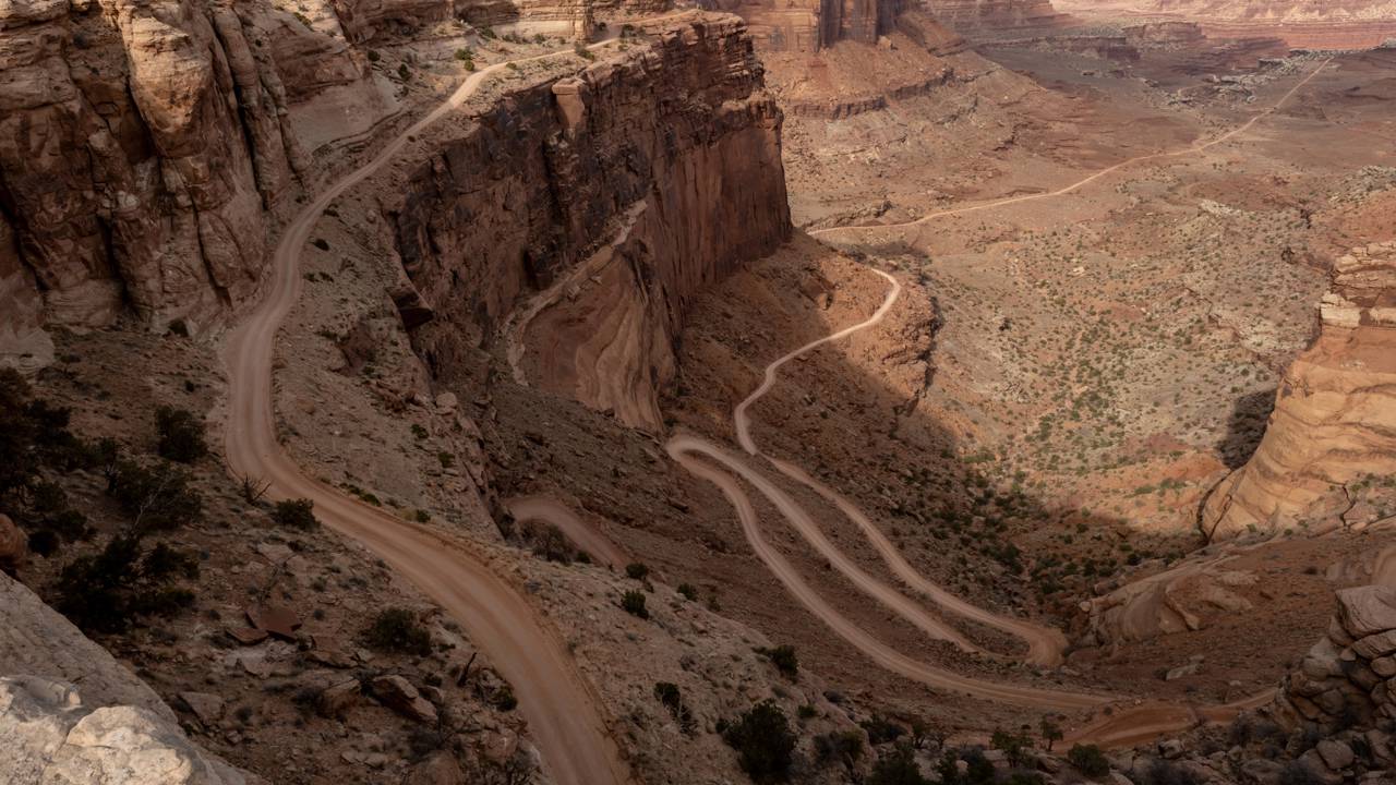 A Shafer Trail é uma estrada de terra lendária que desce os penhascos do Canyonlands National Park, em Utah. Famosa por seus zigue-zagues vertiginosos, ela oferece um dos desafios mais emocionantes para motoristas de veículos off-road.