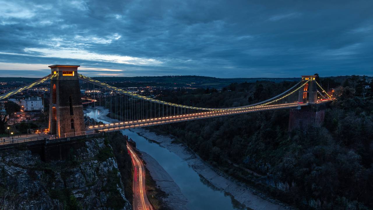 A Clifton Suspension Bridge é o maior símbolo da genialidade da engenharia vitoriana na cidade de Bristol, Inglaterra. Com seus 214 metros de vão, a ponte de 1864 repousa solenemente suspensa a 75 metros de altura sobre o imponente desfiladeiro do rio Avon.