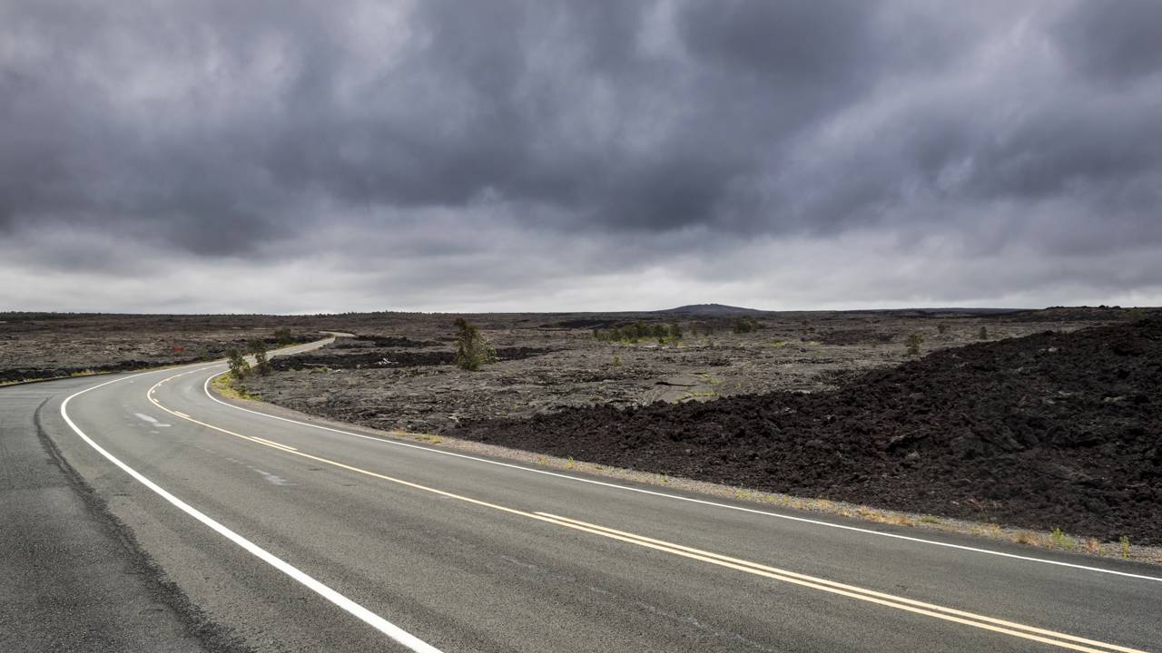 A Chain of Craters Road é uma rodovia espetacular de 30 km no Havaí que desce 1.100 metros desde o cume do vulcão até o oceano. O trajeto cênico termina abruptamente onde a lava vulcânica da erupção de 1986 bloqueou o asfalto de forma definitiva.