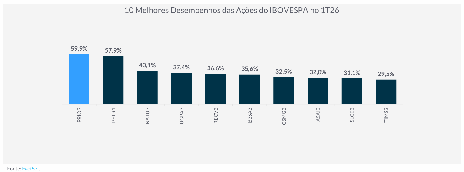 No fechamento do trimestre, a Petrobras (PETR3; PETR4) detinha o maior valor de mercado do país (R$ 666,3 bilhões), enquanto a Vale (VALE3) liderou o volume diário de negociações.