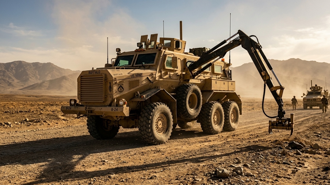 Por que o blindado monstruoso de 6 rodas conhecido como Buffalo sobrevive a grandes explosões que destroem outras viaturas? A estrutura inovadora dessa máquina de guerra permite que os esquadrões desarmem armadilhas explosivas severas com segurança absoluta nas estradas perigosas.