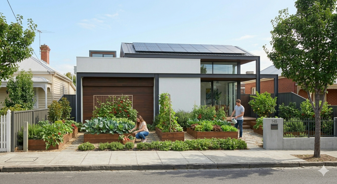 Ter uma casa urbana com recuo frontal produtivo é a escolha ideal para quem busca autonomia alimentar sem abrir mão da beleza. Esse espaço de 60 metros quadrados equilibra perfeitamente a proteção do imóvel com um paisagismo funcional.