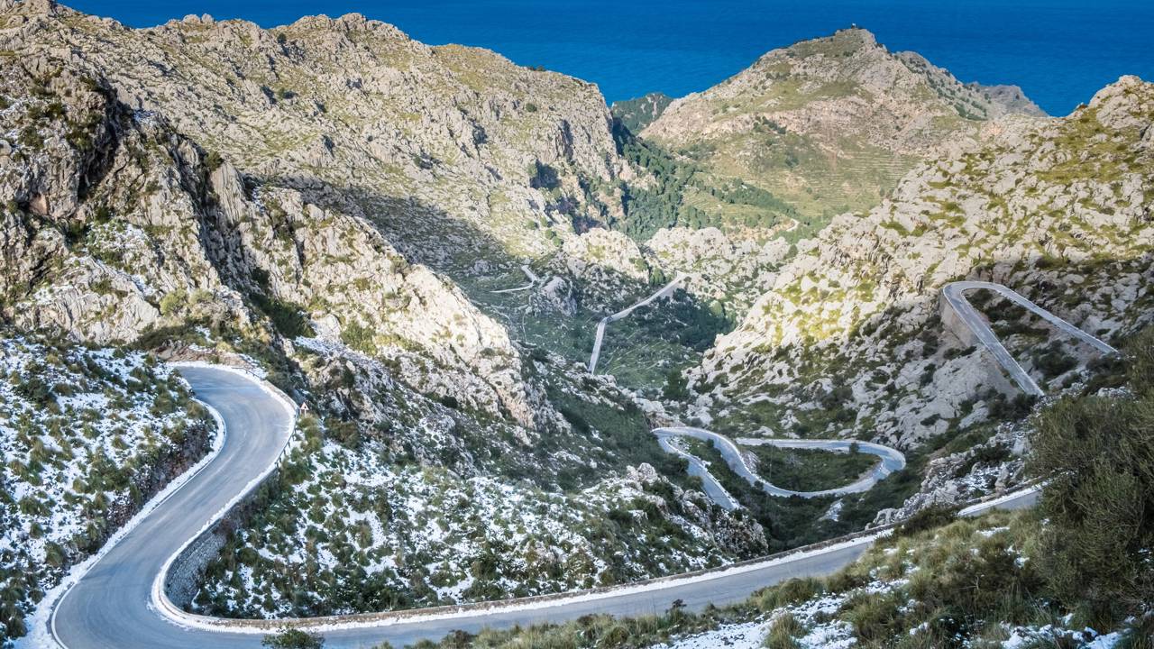 A Estrada de Sa Calobra em Maiorca, na Espanha, é um verdadeiro monumento de engenharia viária. Com 13 km de extensão e um looping de 270 graus conhecido como “Nó da Gravata”, esta estrada foi esculpida na rocha para vencer o relevo acidentado da Serra de Tramuntana.