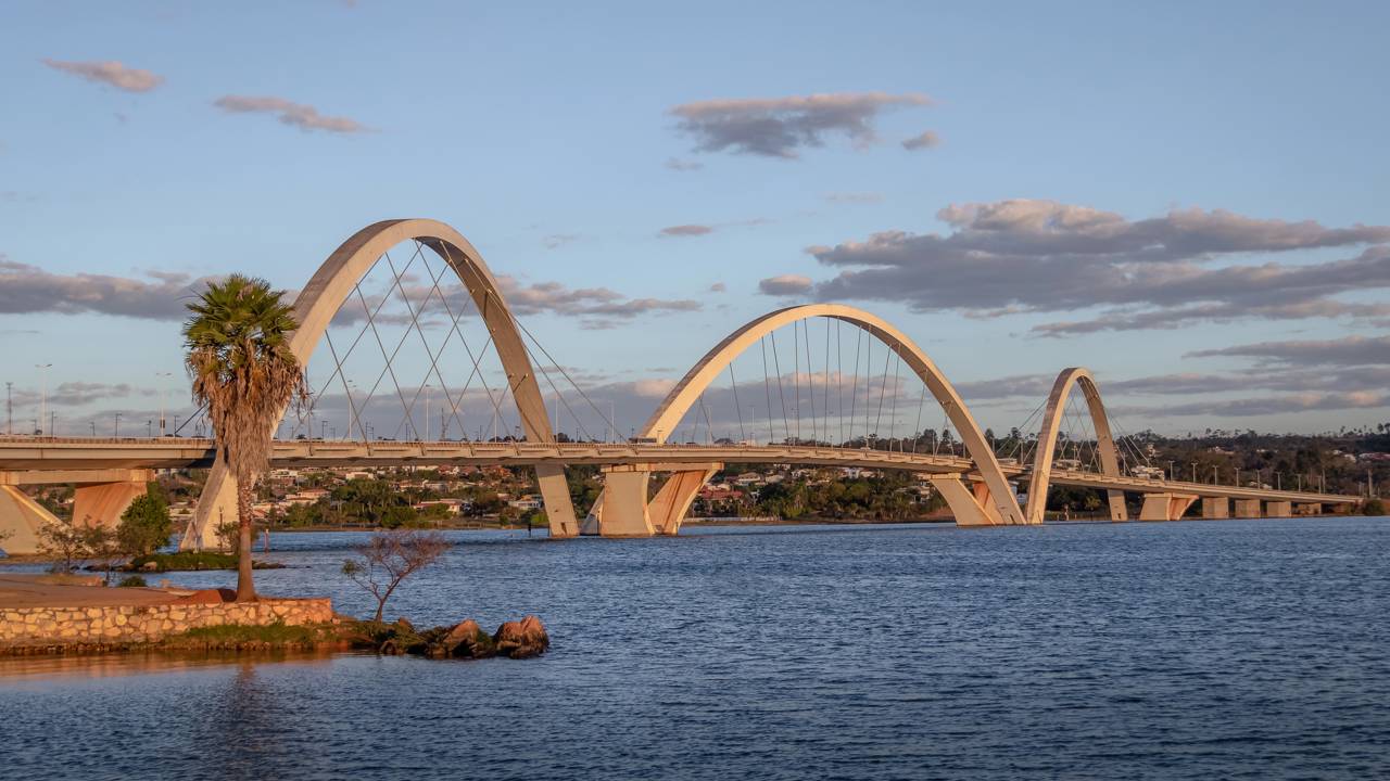 A Ponte Juscelino Kubitschek, ou Ponte JK, cruza o Lago Paranoá em Brasília com uma elegância que a transformou em cartão-postal da capital. Projetada por Alexandre Chan, a obra utiliza três arcos assimétricos colossais para vencer um vão de 1.200 metros, sendo uma referência mundial.