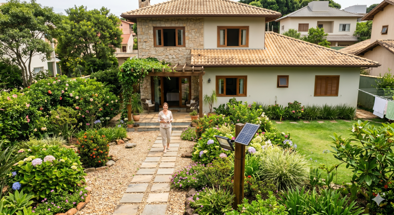 A economia é percebida logo no primeiro mês, já que o refletor solar com controle remoto consome zero energia da rede elétrica. Para quem tem quintais grandes ou frentes de loja, substituir quatro lâmpadas de 100W por modelos solares gera uma folga real no orçamento familiar.