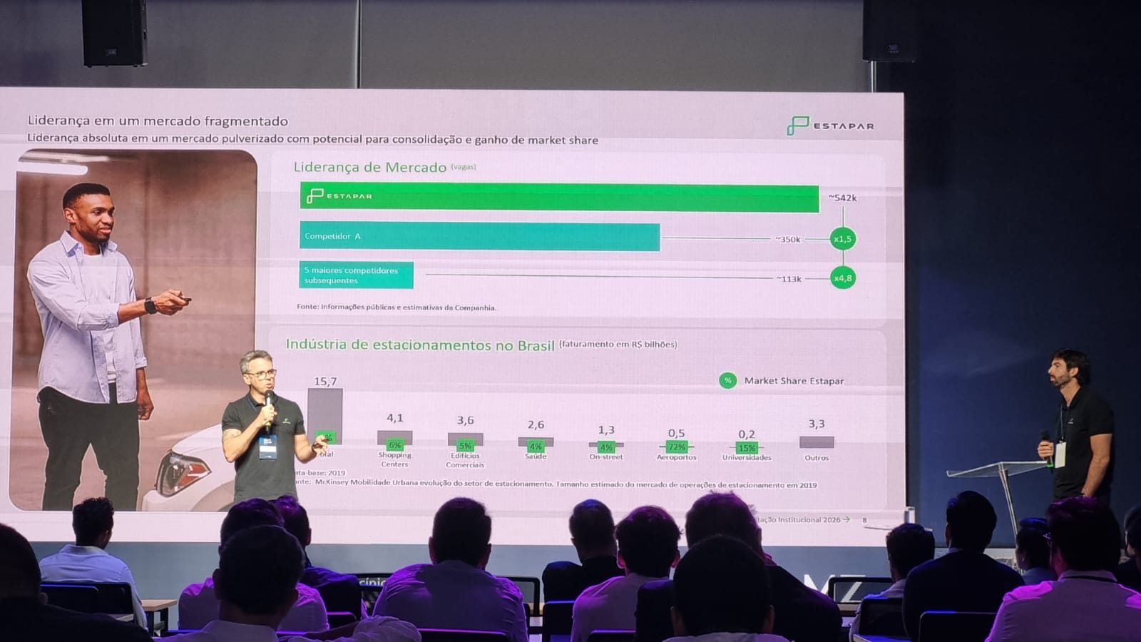 Na apresentação, o executivo apresentou os resultados financeiros do último ano e detalhou os planos de expansão para 2026. Atualmente, a Estapar lidera o mercado nacional de estacionamentos, que, segundo os últimos dados da consultoria McKinsey, está estimado em mais de R$ 15,7 bilhões.
