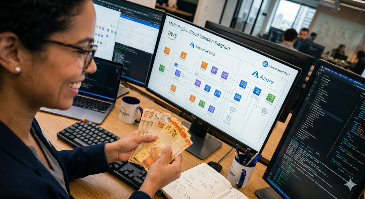 Esse especialista funciona como um engenheiro que desenha a planta de um prédio, só que no mundo virtual da tecnologia. Ele escolhe quais ferramentas da AWS, Azure ou Google Cloud são melhores para guardar os arquivos e rodar os sistemas de uma empresa.