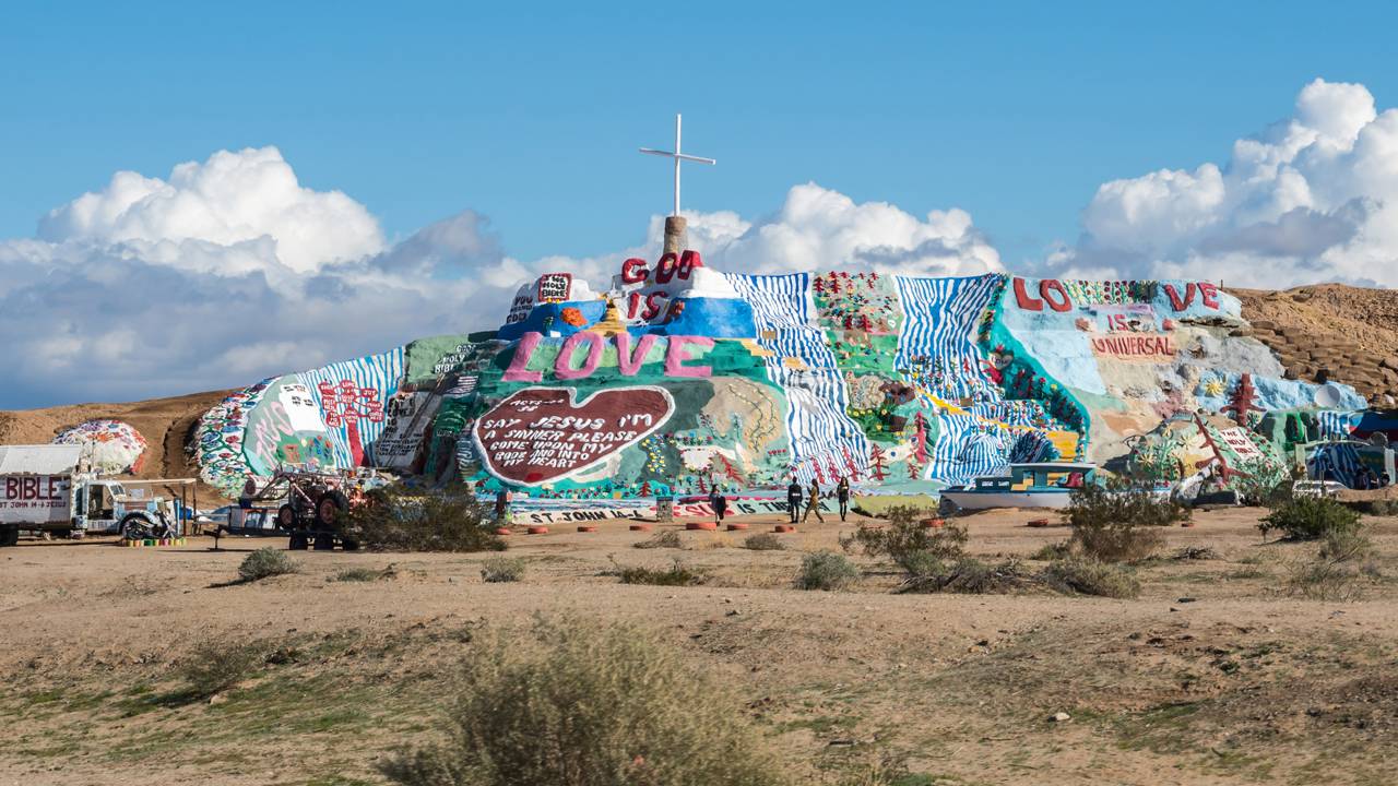 O deserto árido inspirou criações monumentais como a Salvation Mountain, uma montanha pintada com toneladas de tinta doada que se tornou um símbolo turístico do local. O lixo acumulado no assentamento é frequentemente transformado em esculturas expressionistas em locais como o clube East Jesus.
