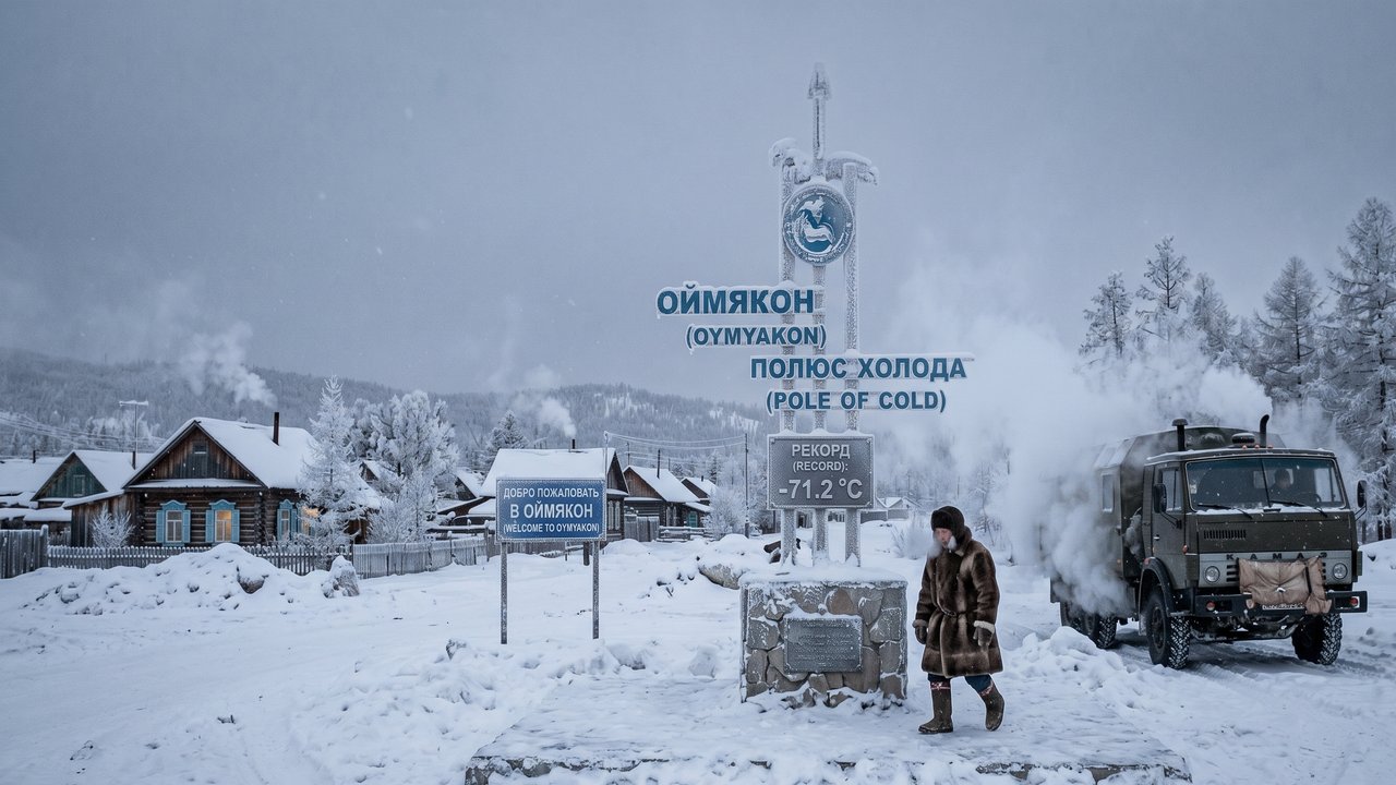 A borracha dos pneus torna-se tão frágil como vidro e se rompe sob pressão nas ruas de Oymyakon. Relatórios do Serviço Hidrometeorológico da Rússia evidenciam que os aditivos anticongelantes e as mantas térmicas de motor são adaptações cruciais para a sobrevivência do transporte de suprimentos da capital Yakutsk até a vila.