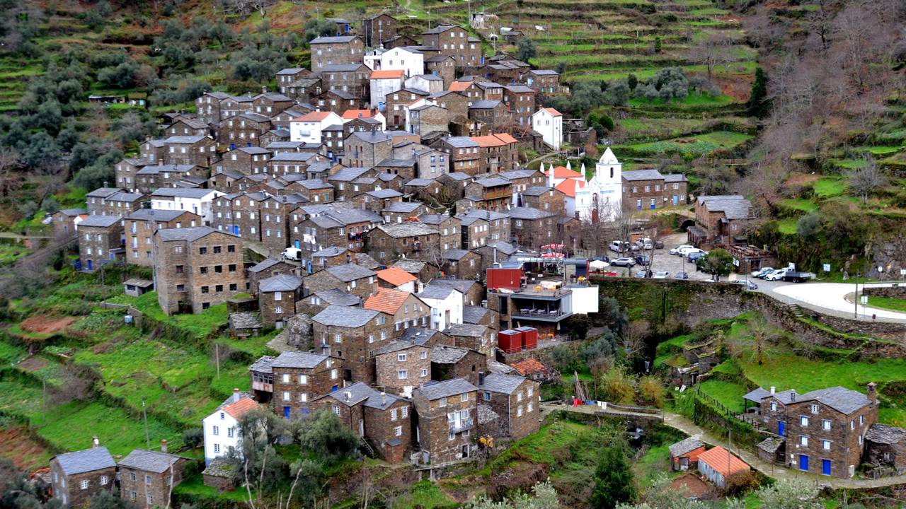 A abundância de xisto, uma rocha metamórfica local que se quebra em placas lisas, foi a matéria-prima perfeita para os construtores da Serra do Açor. As paredes das casas, os telhados e o calçamento das ruas sinuosas foram todos erguidos empilhando essas lascas de pedra escura, quase sem uso de argamassa.