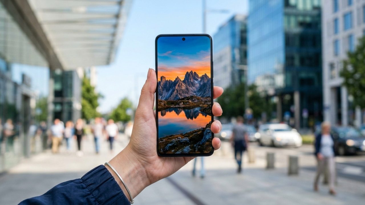 A tela AMOLED com taxa de atualização de 120 Hz proporciona fluidez visual constante durante a navegação ou reprodução de vídeos complexos. O brilho máximo alcança patamares elevados, o que facilita a visualização de conteúdos em ambientes externos sob incidência direta de luz solar intensa sem perda de contraste.