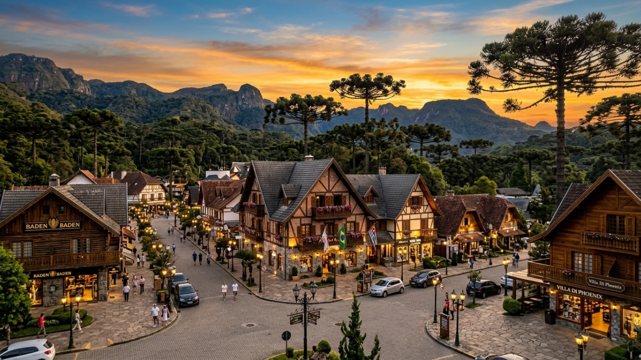 As construções em estilo alpino, com telhados inclinados e muita madeira, são uma adaptação natural ao ambiente de montanha. O charme europeu, combinado com a paisagem de araucárias, criou uma identidade única que atrai turistas o ano todo, mas que brilha especialmente durante o inverno rigoroso da serra.