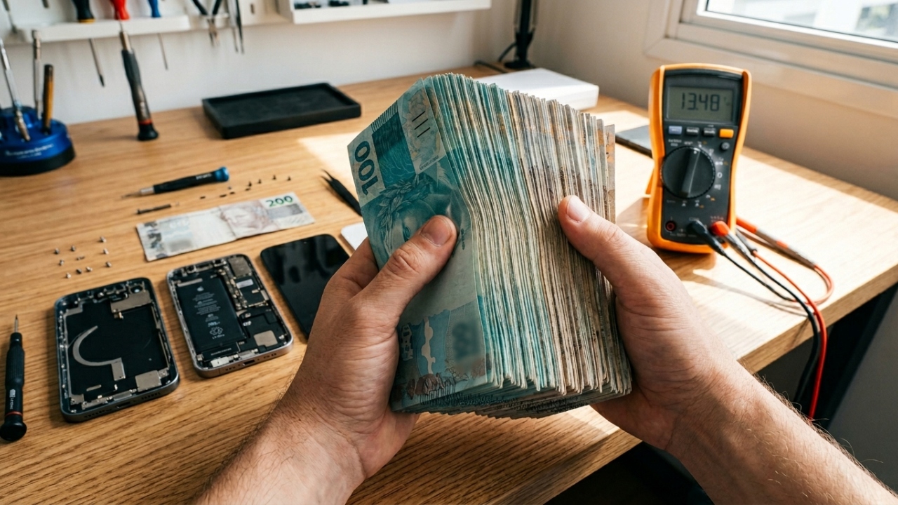 O faturamento médio de um profissional dedicado ao conserto de aparelhos premium varia entre R$ 8.000 e R$ 12.000 mensais em centros urbanos brasileiros. Por não exigir faculdade, o retorno sobre o investimento em ferramentas e treinamentos ocorre rapidamente, consolidando a carreira como uma alternativa financeira sólida para profissionais autônomos ou empreendedores.