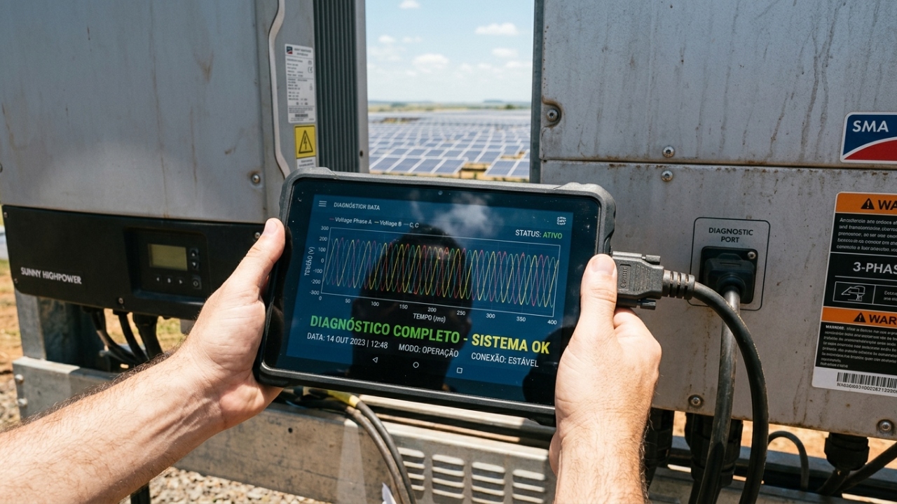 O inversor atua como a central de comando que converte a corrente contínua gerada pelos painéis em corrente alternada. Sem esse componente operacional, a usina perde funcionalidade, o que exige intervenções precisas de técnicos qualificados para diagnósticos de falhas eletrônicas e otimização de sistemas industriais modernos.