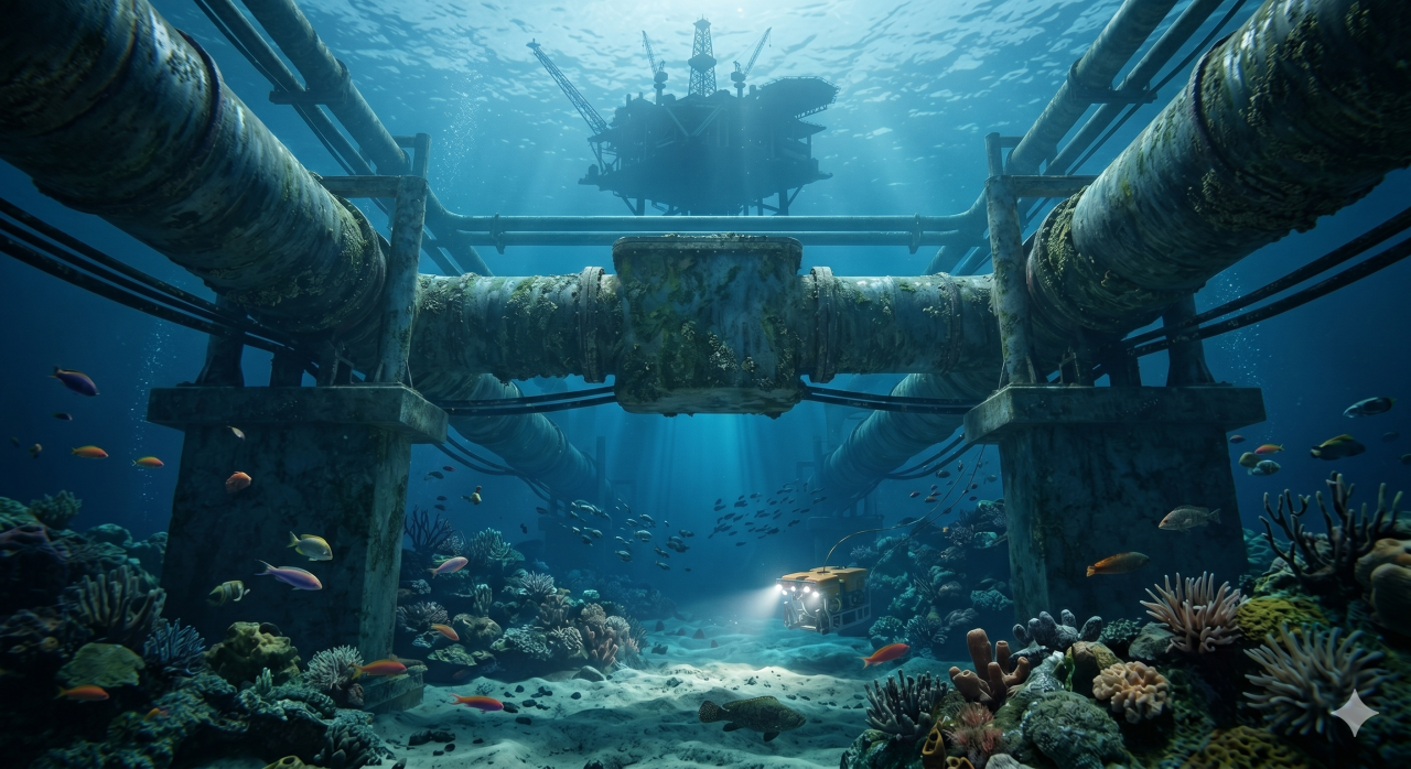 O sistema utiliza tubulações de aço revestidas com camadas de polímeros para aguentar a pressão absurda do oceano. Essas linhas, conhecidas como risers, puxam o óleo lá do fundo diretamente para as plataformas ou navios-tanque que ficam esperando na superfície.