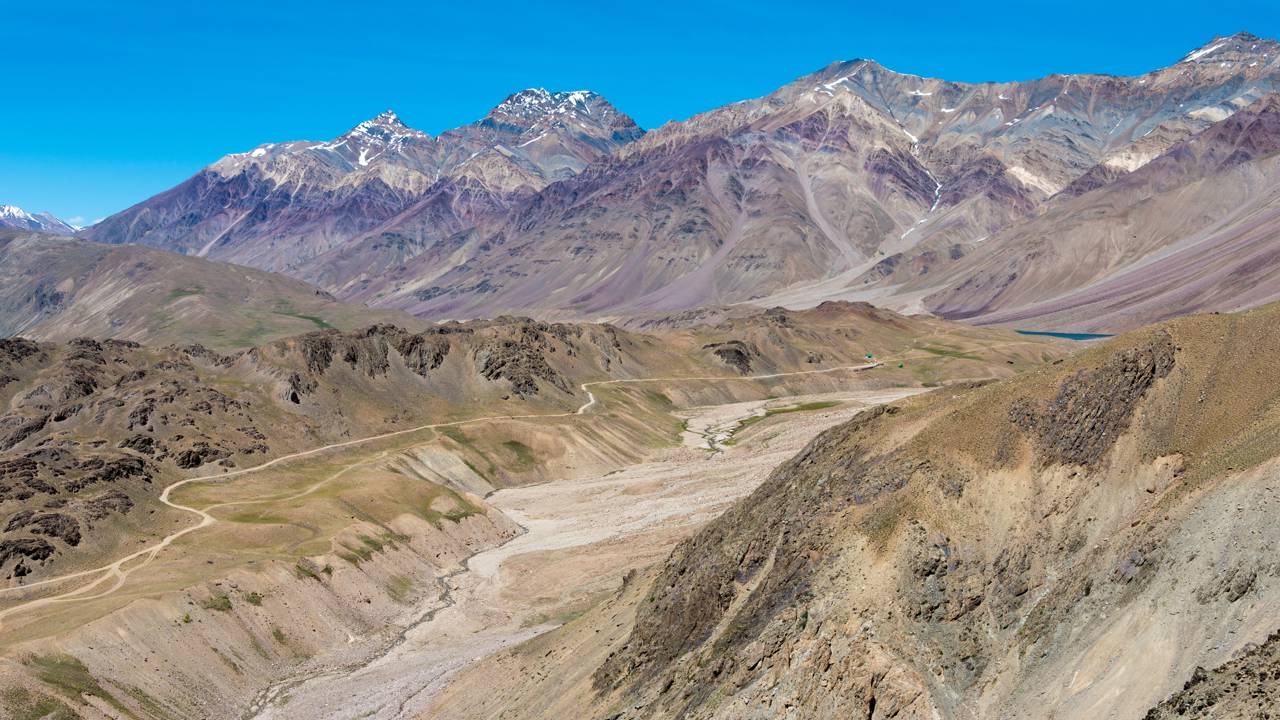 Durante a curta janela de verão, o derretimento intenso do gelo nos picos cria cascatas temporárias que cruzam a pista de terra. Não há pontes para esses riachos intermitentes (conhecidos como “Nallahs”); o motorista precisa cruzar o leito rochoso submerso sob águas congelantes e rápidas.