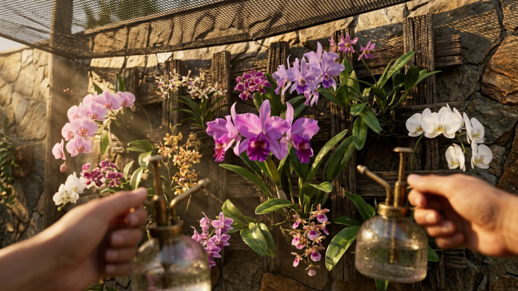 Montar um orquidário vertical no muro transforma áreas residenciais ociosas em ambientes botânicos perfeitos. Esse projeto exige controle térmico e luminosidade adequada para garantir o cultivo seguro e a floração abundante das suas espécies ao longo do ano.