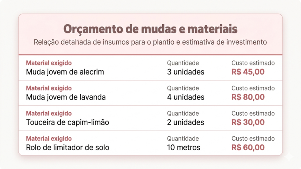 Documentos oficiais da Empresa Brasileira de Pesquisa Agropecuária confirmam que espécies condimentares e botânicas possuem um excelente rendimento. O gasto total varia ligeiramente dependendo do tamanho das plantas adquiridas e da região de entrega.