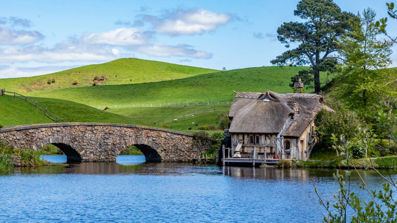 Com 44 tocas de hobbit perfeitamente construídas, o vilarejo cinematográfico de Hobbiton, na cidade de Matamata, virou o maior ícone turístico da Nova Zelândia. Construído em 1999 em uma fazenda de ovelhas, o cenário da trilogia O Senhor dos Anéis é uma obra-prima de design de produção e engenharia ilusória.