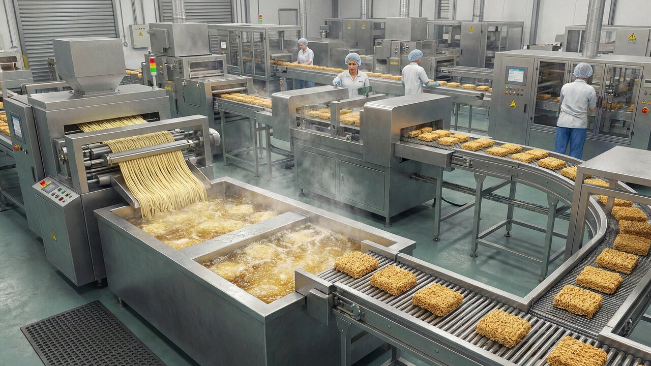 Para desvendar a produção em massa de um dos alimentos mais práticos do dia a dia, selecionamos o conteúdo do canal Tech Tche HD. No vídeo a seguir, os especialistas detalham visualmente o incrível processo industrial de fabricação do macarrão instantâneo e de seus temperos, desde a preparação da massa até o envase automatizado: