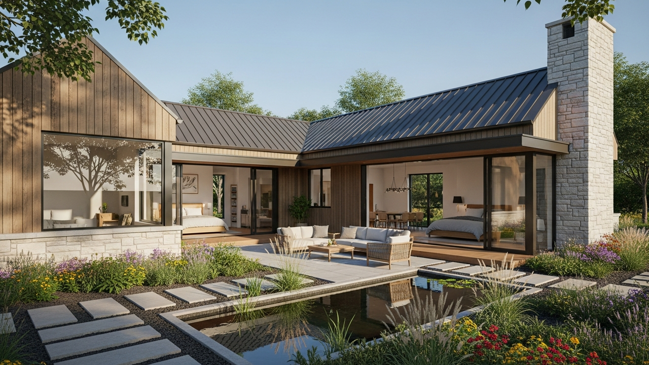 Segundo o vídeo “Casa de Campo em L – Tradicional e Aconchegante”, do canal Tropic com 401 mil inscritos, o modelo enfatiza integração com paisagem, uso de materiais naturais e conforto térmico, refletindo práticas comuns em residências rurais e contemporâneas adaptadas ao cotidiano familiar.