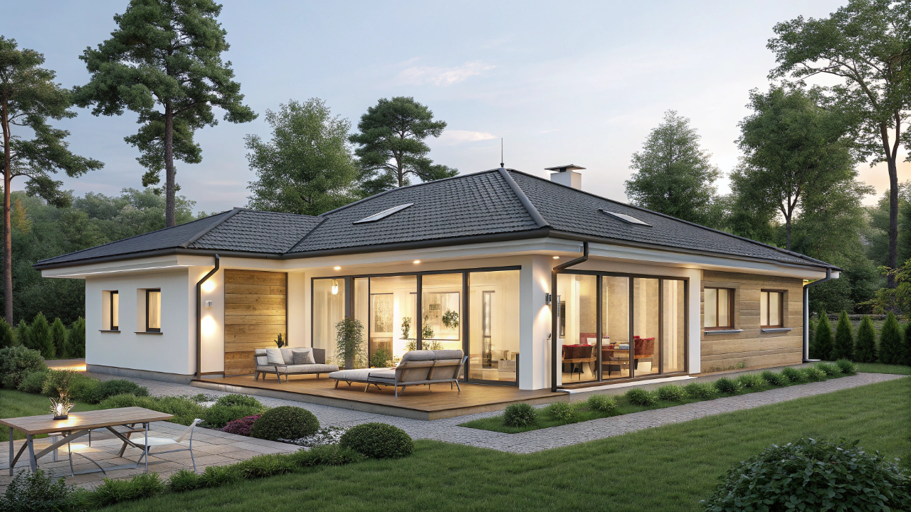 Essa composição remete a residências europeias contemporâneas, combinando minimalismo, conforto térmico e integração visual com áreas externas, conceitos detalhados na Wikipedia sobre arquitetura residencial moderna.