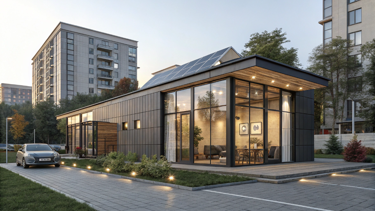 A casa modular de 50 metros quadrados com pele de vidro refletiva aplica tecnologia de controle solar para garantir conforto térmico e privacidade em áreas urbanas. O projeto alia eficiência energética, iluminação natural abundante e organização inteligente dos ambientes, impactando diretamente a rotina familiar.