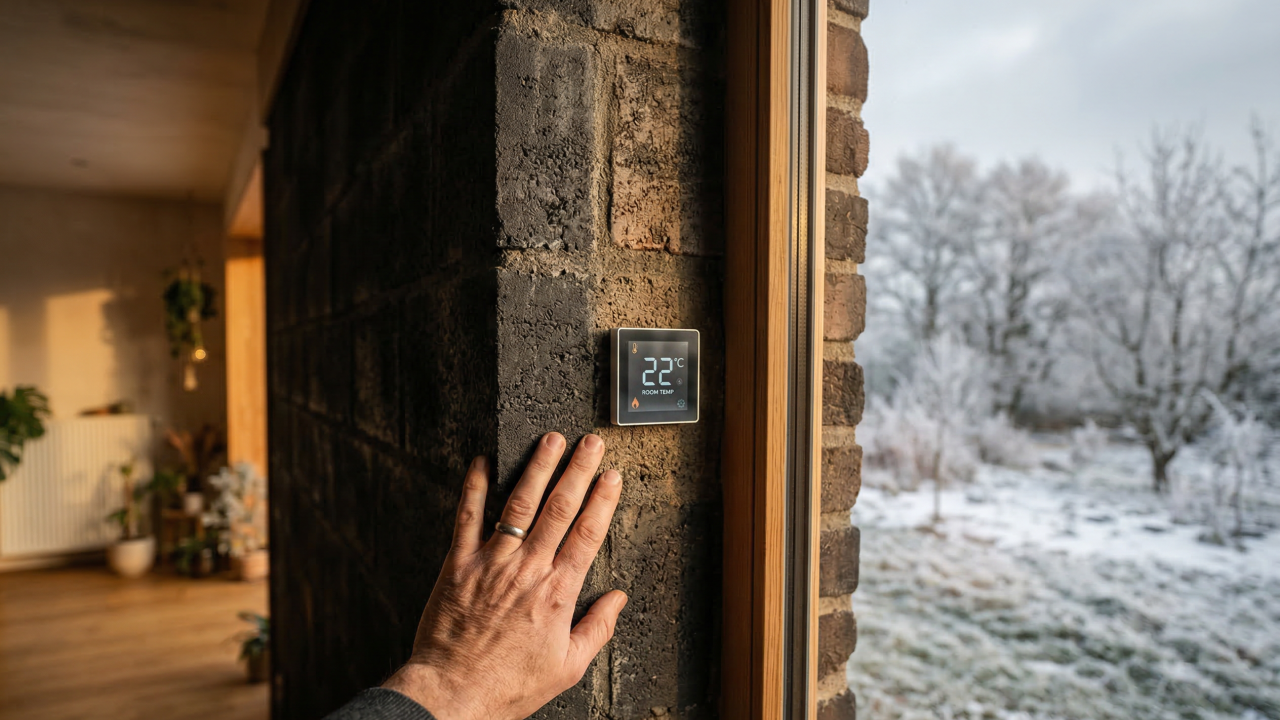 Essa solução é comum em projetos baseados em arquitetura solar passiva. O resultado é um ambiente interno mais estável termicamente, reduzindo a sensação de frio dentro dos cômodos.