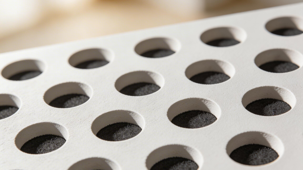 Já superfícies perfuradas absorvem parte da energia sonora. Esse modelo de casa pode proporcionar experiência sonora mais equilibrada em salas de TV, estúdios domésticos ou espaços multimídia.