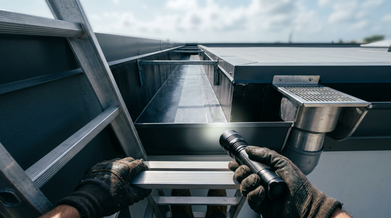 A NBR 10844 estabelece critérios para cálculo de vazão, dimensionamento de calhas e condutores, considerando intensidade de chuva e área da cobertura. Ignorar essa norma aumenta significativamente o risco de falhas no sistema.