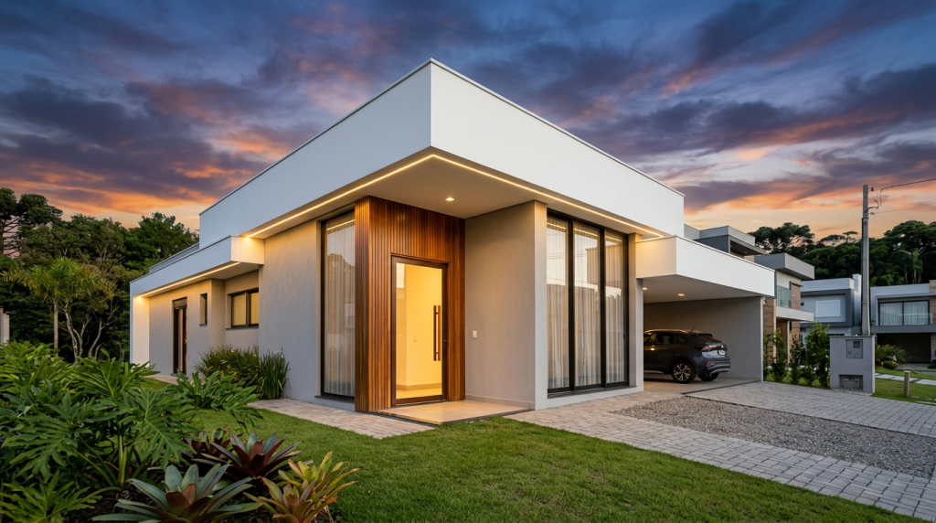 O uso de platibandas permite ocultar o telhado e criar o visual de teto plano em residências. Esse recurso exige atenção técnica no escoamento da água. Falhas no dimensionamento podem causar infiltrações, transbordamentos e danos estruturais.