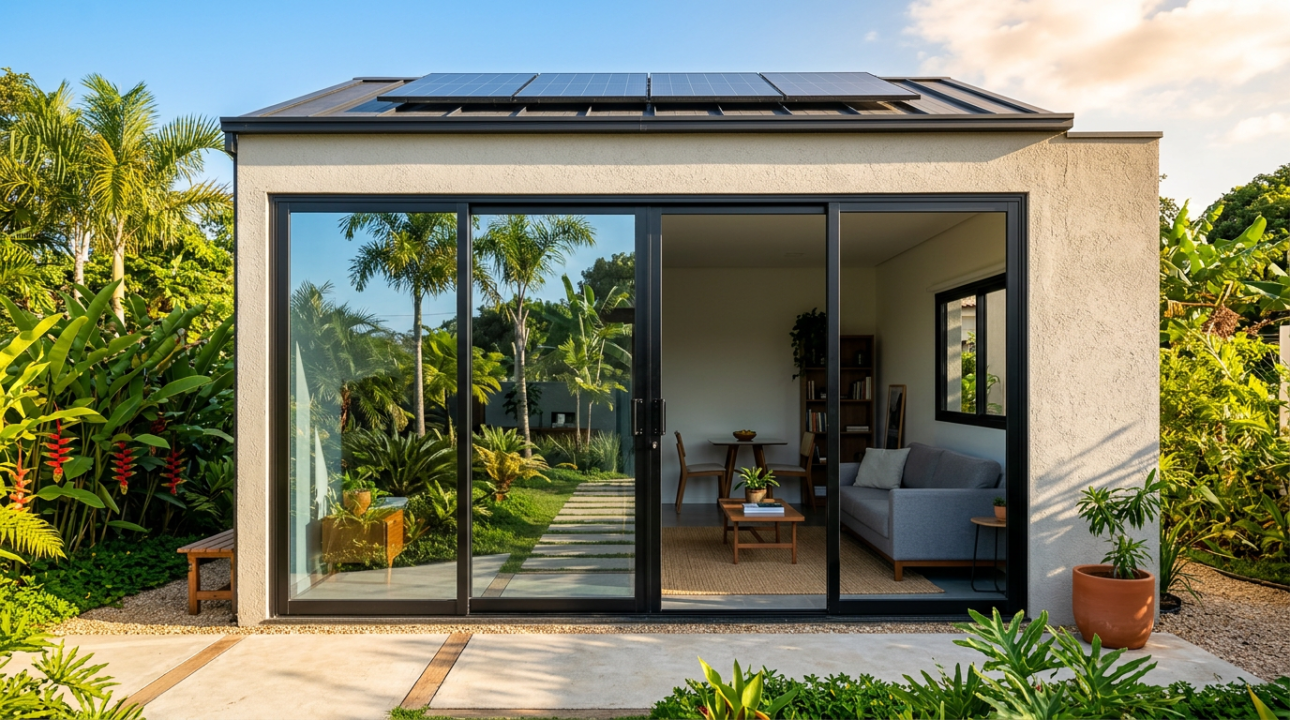 O uso de vidros laminados de controle solar em portas de correr é uma solução moderna e eficiente para quem busca integrar visualmente o ambiente interno com o exterior, sem comprometer o conforto térmico. Em uma casa de 48 m², essas portas equipadas com vidros de controle solar podem bloquear até 70% do calor solar, garantindo a manutenção de uma temperatura interna confortável ao longo do dia.