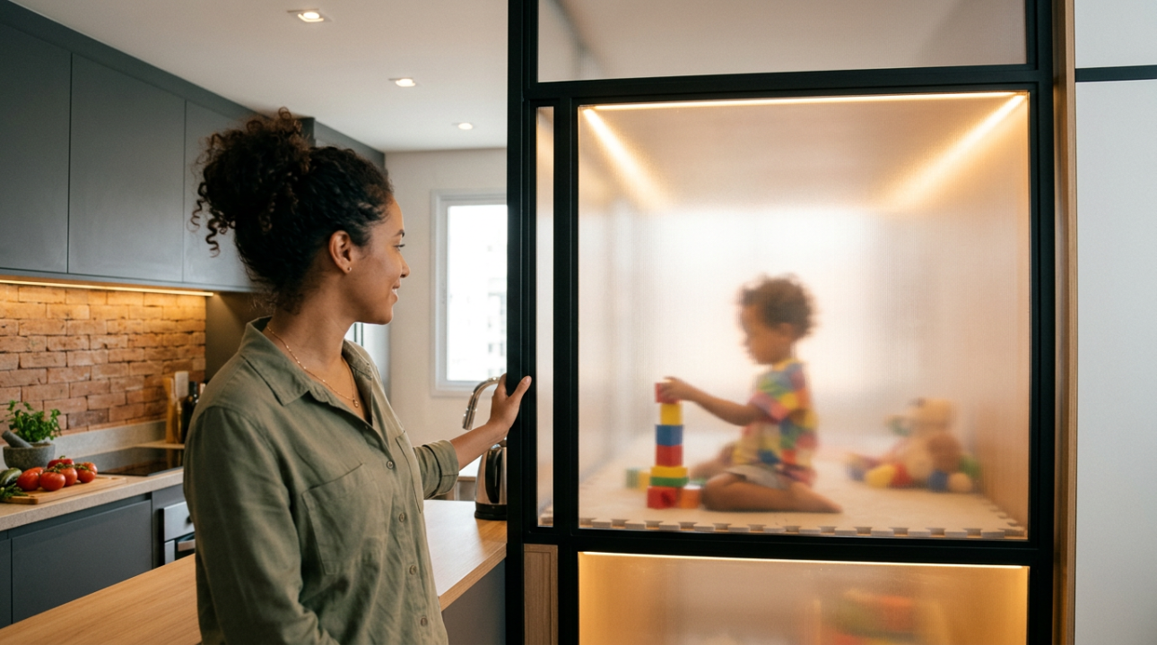 Este modelo de casa é perfeitamente indicado para famílias com filhos pequenos, pois a resistência ao impacto do policarbonato garante segurança nas brincadeiras. A translucidez permite que os pais monitorem as atividades das crianças sem comprometer o isolamento acústico.