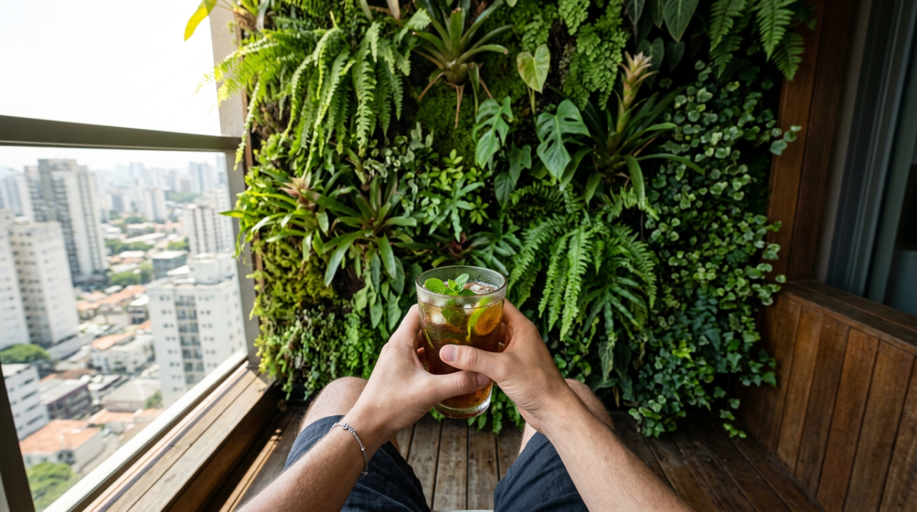 A utilização de um sistema de jardim vertical em uma casa compacta atua como um regulador térmico passivo de alta eficiência. Estudos de engenharia civil comprovam que a camada vegetal impede que o calor seja absorvido pela massa térmica das paredes cegas da residência.