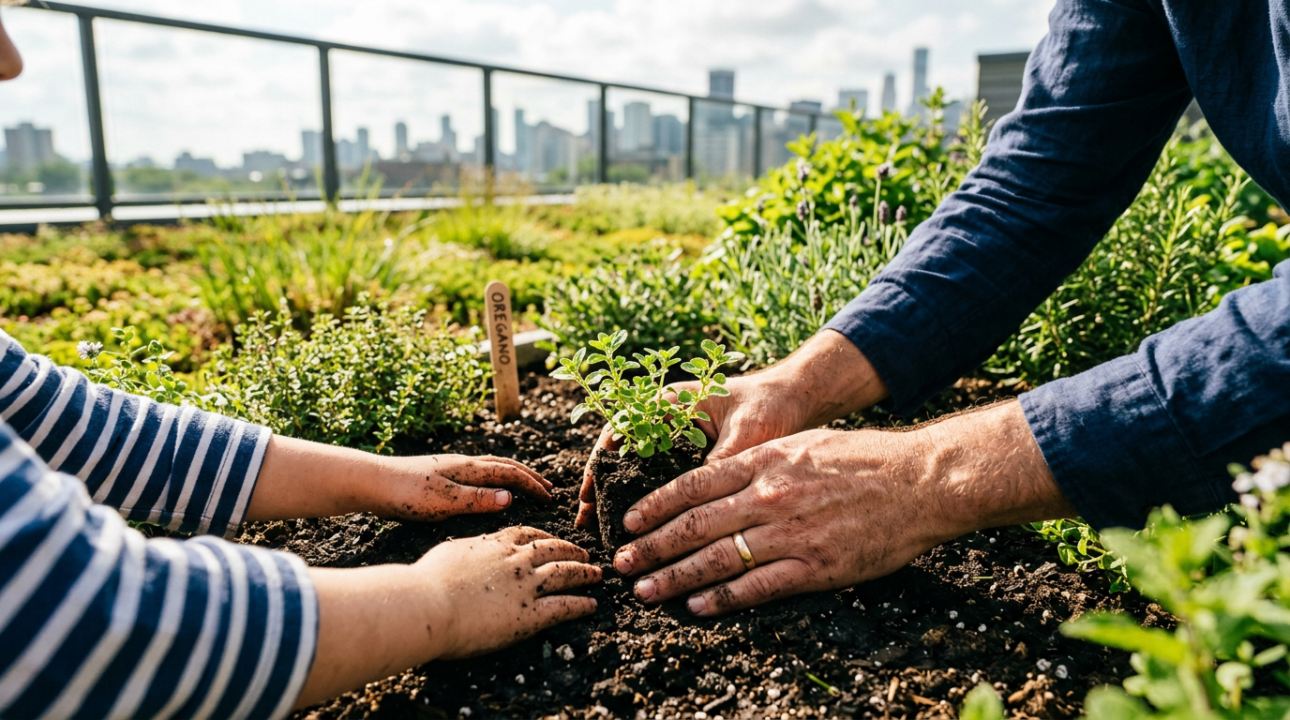 - Distribuição de substrato orgânico leve com espessura adequada ao tipo de planta.